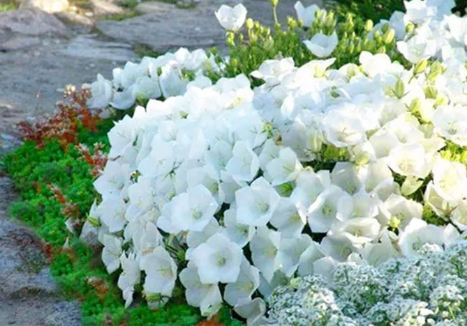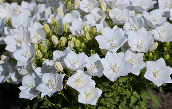 - «Уайт Кліпс» (White Clips) – прикрашає рокарії та клумби білосніжними дзвоноподібними квітами, що розвиваються з травня по липень. Після цвітіння потрібно видаляти відцвілі суцвіття, щоб багаторічник знову зацвів у вересні. Білий дзвоник досягає висоти 20-30 см.