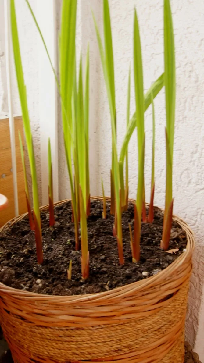 - Приблизно через 2 тижні видаляють залишки листя та квітконосів, стару висохлу материнську бульбу, відокремлюють дочірні бульби, яких буває кілька. Поруч із ними прикріплені маленькі бульби-дітки.