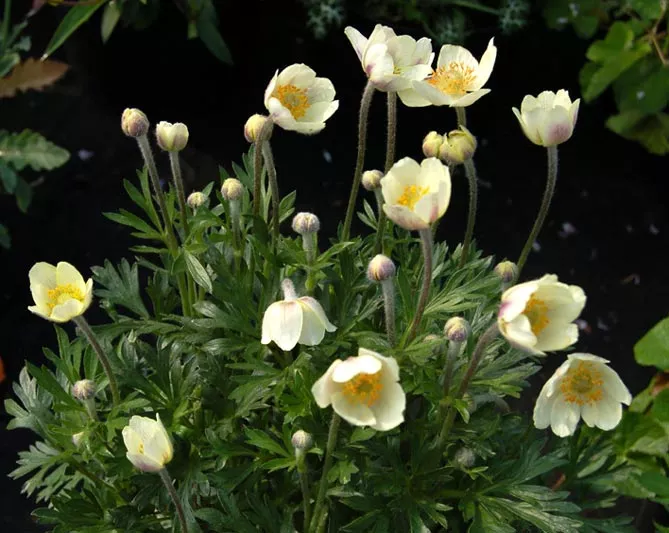 Анемона мультифіда або багаторізна (Anemone multifidia) росте до 30 см. Біло-кремові квіти розвиваються у травні-червні.