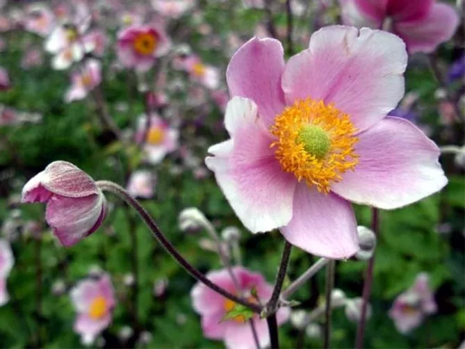 Анемона повстиста або томентоза (лат. Anemone tomentosa) росте до 90 см. Великі квіти діаметром 5-8 см мають рожевий колір. Квітне з серпня по жовтень.