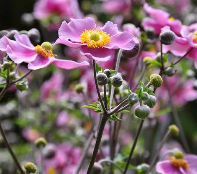 Осінні анемони – високі рослини, які розвивають гарні, барвисті квіти до осені. Ці квіти зазвичай продаються у горщиках. Посаджена пізньої весни на рабатки, вони розцвітуть того ж року. Відстань між саджанцями має становити приблизно половину висоти рослини або 20-50 см.