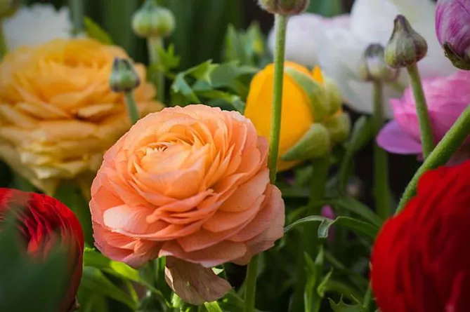 Квіти ранункулюса мають різноманітні забарвлення: