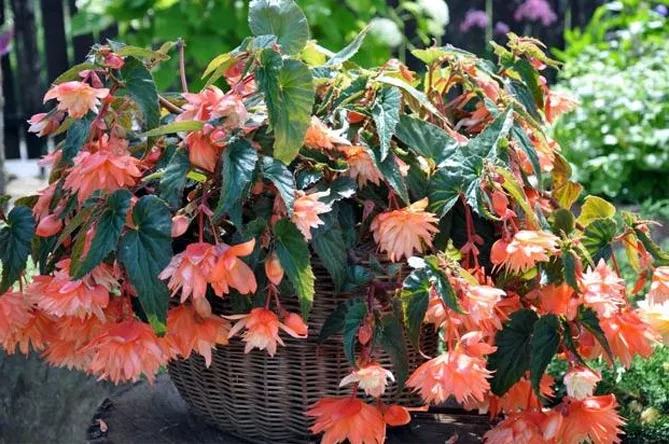 Бегонії представлені переважно гібридами, які походять із бульбових та зимових бегоній. Ці рослини більш вражаючі, ніж їхні предки, квітнуть безперервно з травня по осінь. Ампельні сорти бегонії можуть досягати до 60 см у довжину.