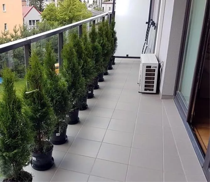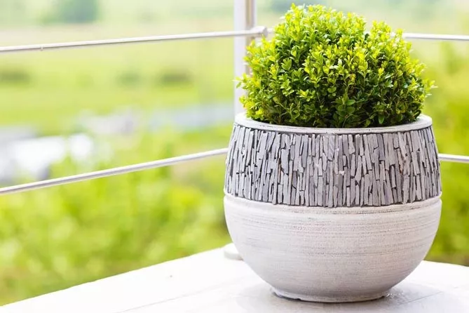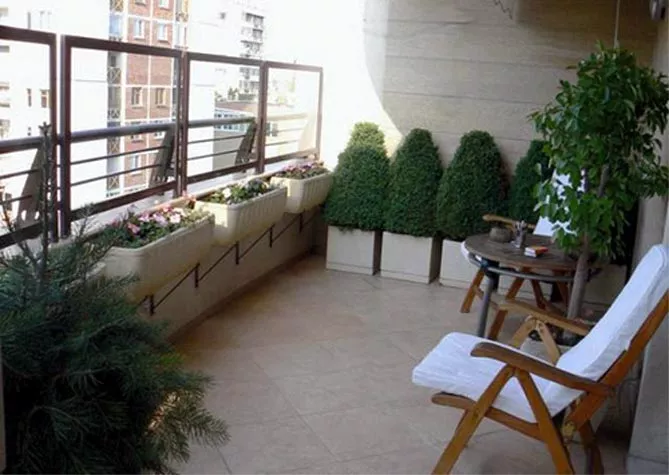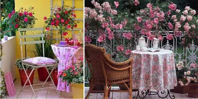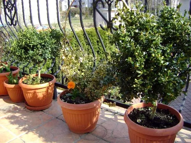 Декоративний чагарник чудово працює на великих терасах, балконах. Краще вибирати сорти з повільним ростом. Вони гарно виглядають на балконах у стилі шебі-шик, класичних.
