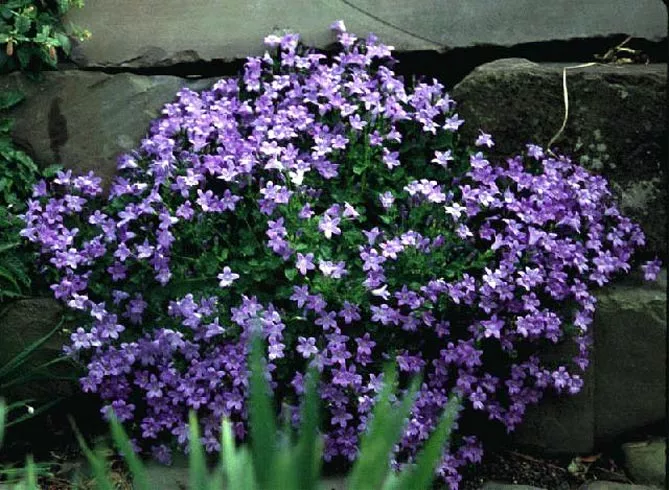 Це специфічна квітка, яка нагадує дику рослинність. Найпоширеніший колір – темно-синій і бордовий, рідше зустрічається у відтінках рожевого або білого. Дзвіночки саджають у місцях з низьким впливом сонця. Краще вони виглядають на балконах, оформлених у природному стилі. Чудово виглядають у компанії горщикових гербер.