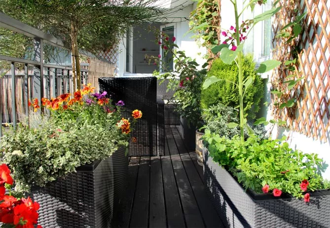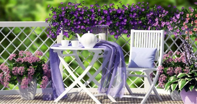 Оформлення балкона квітами має відповідати стилю інших елементів, наприклад меблів. Усі елементи на балконі утворюють єдине ціле.