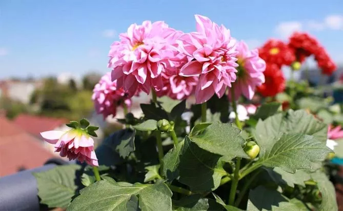 Вони нагадують кольорові кульки, виглядають дуже цікаво, чудово працюють на балконах, оформлених у столичному стилі. Георгіни бувають різних кольорів, варто поєднувати кілька різних відтінків. Така композиція підходить для інтер'єру, де меблі не надто насичених кольорів. Георгіни потрібно розміщувати в сонячних місцях, але захищених від сильного вітру.