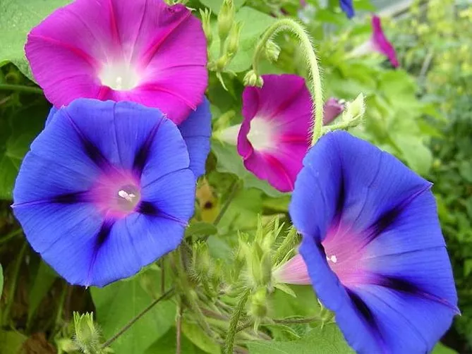 Однорічна іпомея для балкона – витка квітка з великими (до 4 см) квітками фіолетового, блідо-рожевого, бузкового, білого або чистого блакитного кольору, листками у формі серця. Рослина росте «миттєво», досягаючи 4 метрів у висоту. Добре розвивається на сонці та в напівтіні. Легко розмножується з насіння. Щоб створити завісу з квітів, їх потрібно щільно посадити у родючому ґрунті. Рослини потребують рясного поливу, коли субстрат висохне, одразу поникнуть листки.