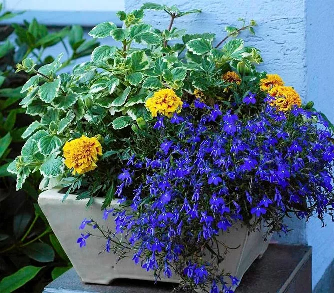 Раніше лобеллії утворювали лише невеликі скупчення крихітних квітів, сьогодні з'явилися ампельні сорти з довшими, звисаючими пагонами, підходящими для підвісних кошиків. Лобелія любить родючий і злегка вологий субстрат, сонячні позиції. Коли вона втрачає красу, її можна обрізати до висоти 15-20 см – тоді лобелія повторить цвітіння. Розмножується насінням, посіяним у січні-лютому у теплиці.