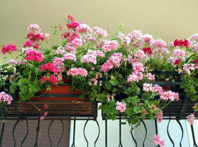 Пеларгонії найчастіше обирають для балкона. Популярність герані обумовлена легким доглядом. Пеларгонії потребують багато світла, призначені для південного вікна, балкона. Герань підходить до сучасного та традиційного дизайну балконів. Часто пеларгонії саджають у компанії петунії.