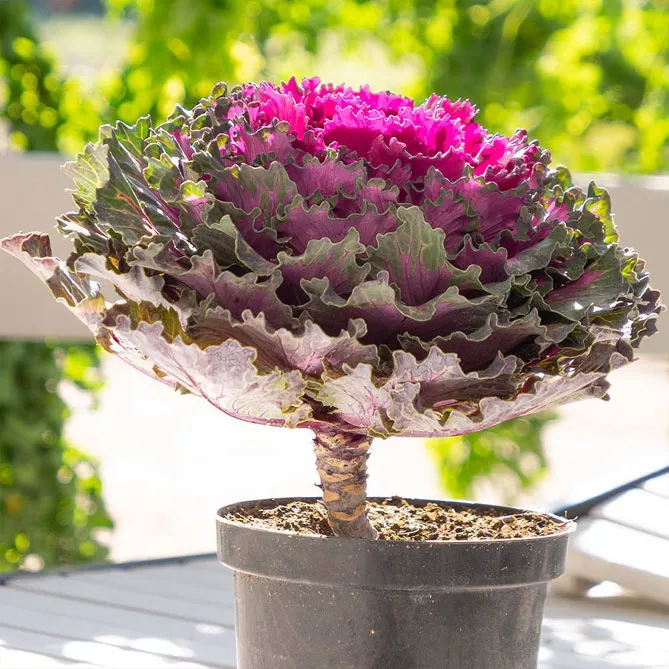 Саджанці декоративних сортів капусти, куплені восени, зазвичай мають дуже гарний, компактний вигляд і короткі, коренасті стебла з великою кількістю листків. Якщо вирощувати капусту з посіяних своїми руками насінин, можна отримати високі, хиткі головки на довгих, лисих стеблах (навіть понад 50 см заввишки), які нерішуче тримають рівновагу у горщи капусту групами, щоб підкреслити її надзвичайну красу.