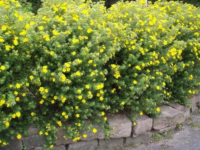 Листяний чагарник п'ятилистник цвіте довго – з середини травня по жовтень. Сорти розрізняються переважно забарвленням квітів:
