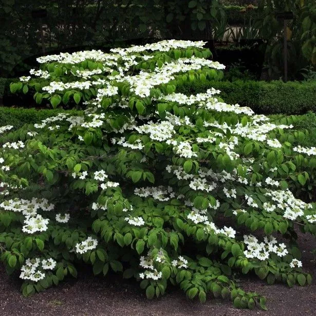 Чагарник зазвичай досягає висоти 1,5-2 метри, належить до родини Musket (Adoxaceae). У природному стані росте в Китаї, Тайвані, Японії. Характеризується темно-зеленим листям (жовтим, червоним восени) із зубчастими краями. Квітки білі, зібрані у великі, сплюснуті суцвіття. Калина цвіте двічі – у травні та серпні. Восени дає червоні плоди, що змінюють колір у міру дозрівання. Характеризується слабкою морозостійкістю. Висаджують на сонячному, теплому, захищеному від вітру місці. Взимку калину вкривають агротекстилем, мульчують землю біля стовбура.