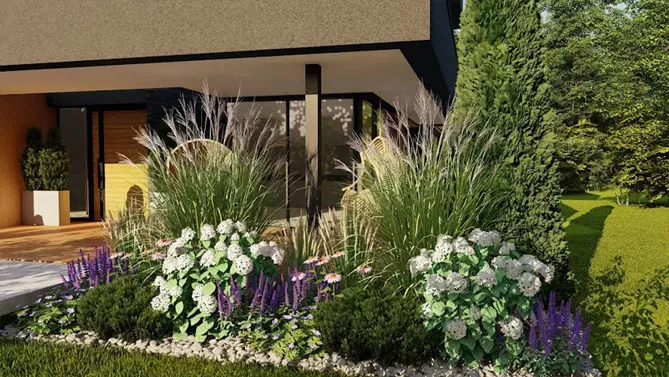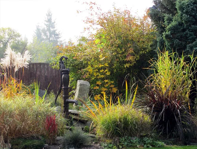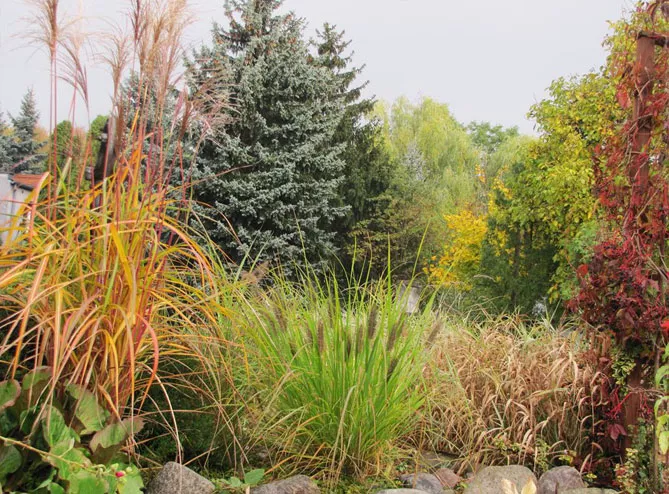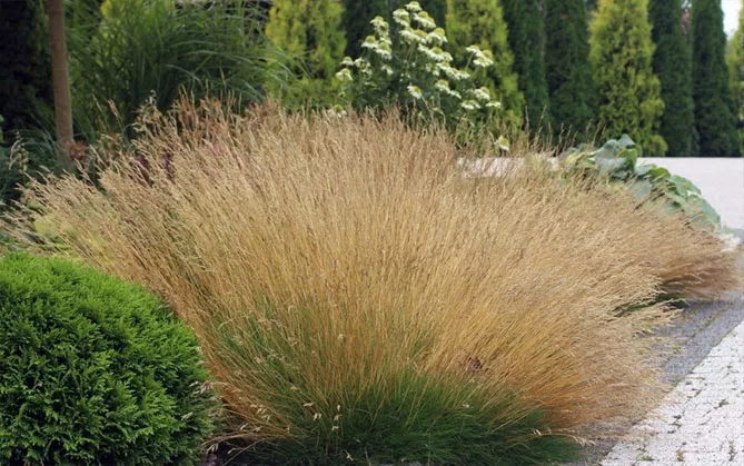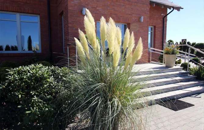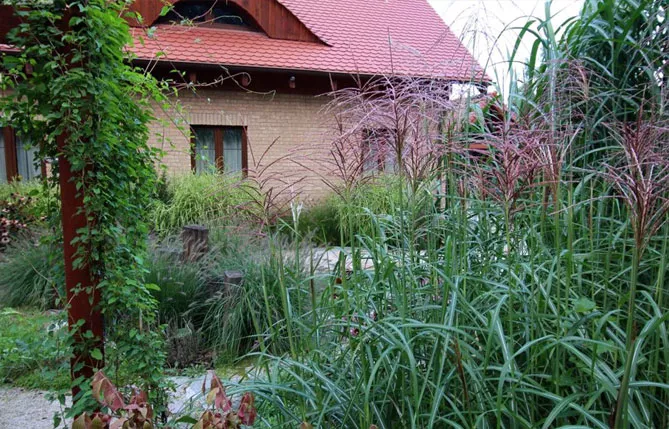 Багаторічні злаки можна посадити, наприклад, біля стіни будинку, паркану, перголи.