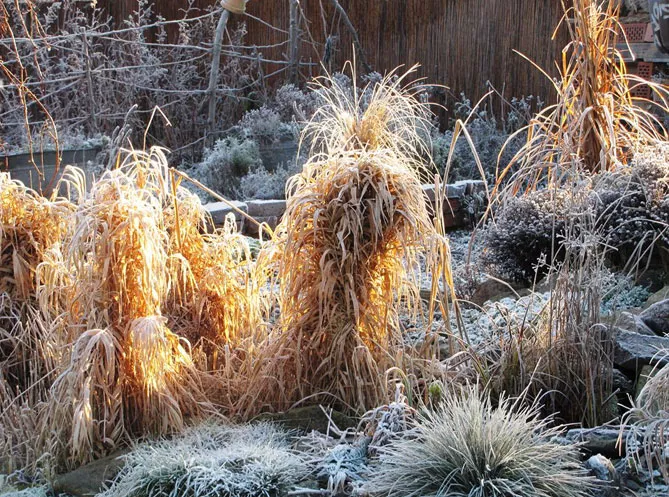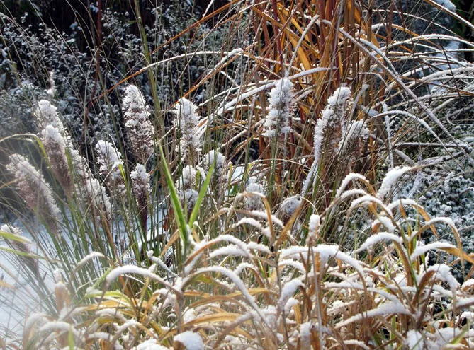 Фото. Багаторічні декоративні злаки (трави) в садах восени та взимку