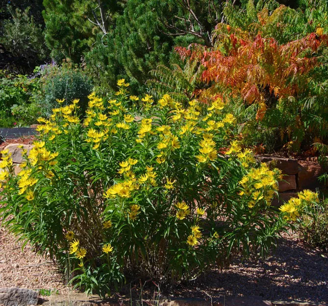 Helianthus salicifolius відрізняється довгими, вузькими, вигнутими листками, схожими на листя верби.