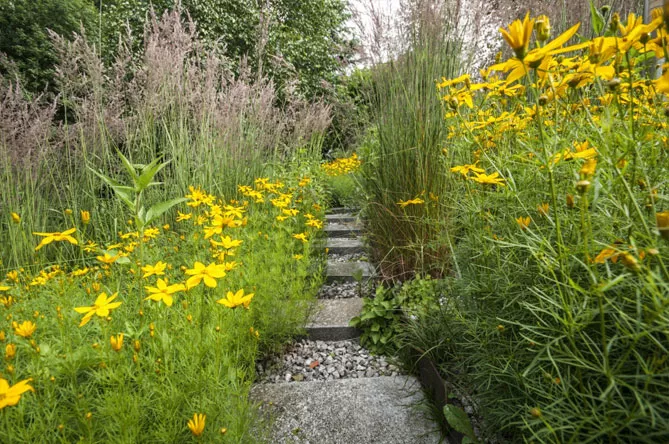 - Якщо посадили швидкорослі інвазивні види (Helianthus Maximiliani), викопайте їх восени та видаліть коріння з периферії, щоб обмежити зростання рослини.