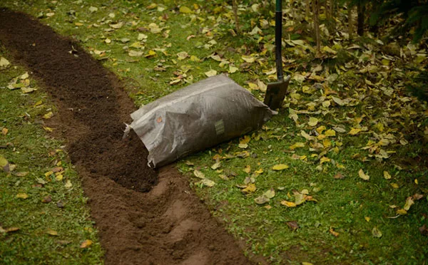 - Готуємо ґрунт. Беремо виделки або лопату і копаємо землю. Вибираємо великі камені, бур’ян, зимуючі в ґрунті личинки комах. У перекопану землю додаємо трохи родючого ґрунту. Можна додати компост – кількох мішків. Коли рівень вирівнюється, знову перекопуємо землю виделками, змішуємо садовий ґрунт з родючим. Хороша доза компосту дасть саджанцям кращий старт.