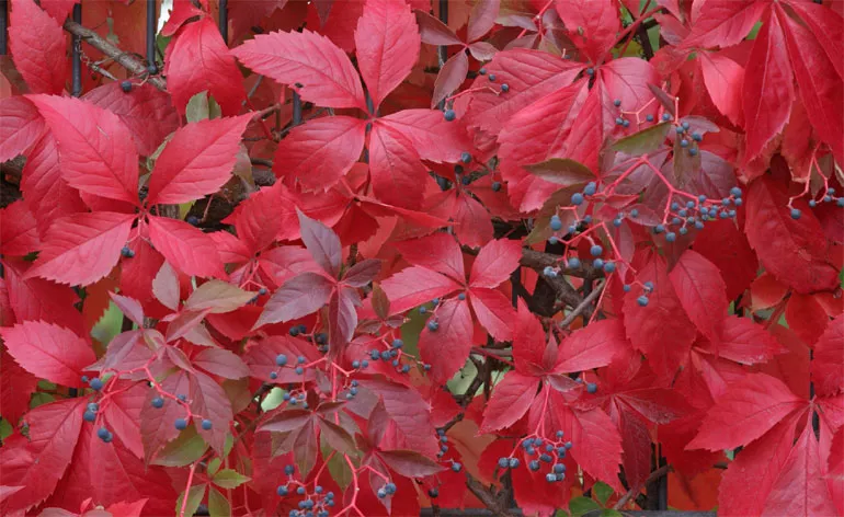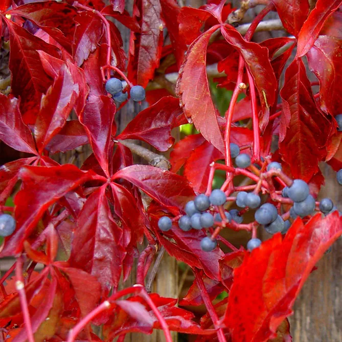 Незважаючи на свою поширеність, ця ліана вражає вражаючо декоративною листям, яка змінюється залежно від пори року, прикрашаючись чудовими відтінками від зеленого до червоного та вогненно-оранжевого восени. Але це не єдиний плюс! Рослина дає неїстівні, але дуже декоративні маленькі синьо-чорні плоди, ідеально гармонуючи з листям.