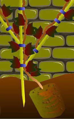 Ліані потрібно допомогти триматися за опори, застосувавши підв'язку. Коли вона добре закріпиться, через 1-2 роки, сама буде вилазити по опорах.