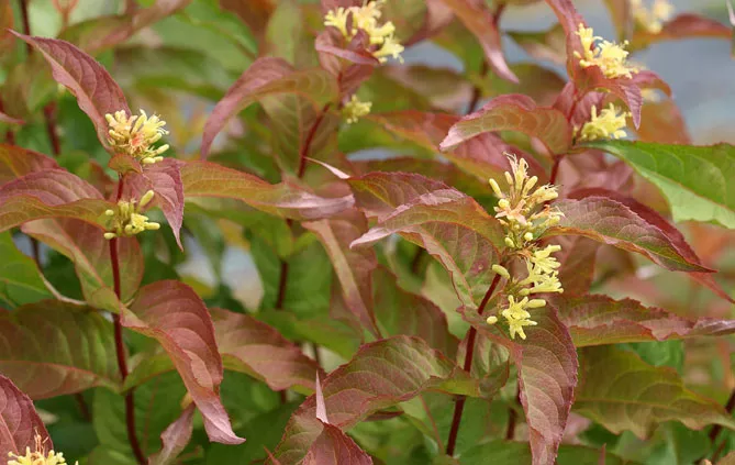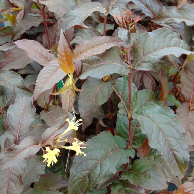 Восени кущ покривається гарним листям у жовтих, оранжевих та фіолетових тонах. Diervilla x splendens має чудові відтінки, починаючи з літа, коли рясні грона золотисто-жовтих квітів виділяються на тлі темно-зеленої рослинності, навіть у тіні набуваючи пурпурово-червоного відтінку. Листя D. splendens Diva цілий рік фіолетове, а восени стає пурпурово-червоним.