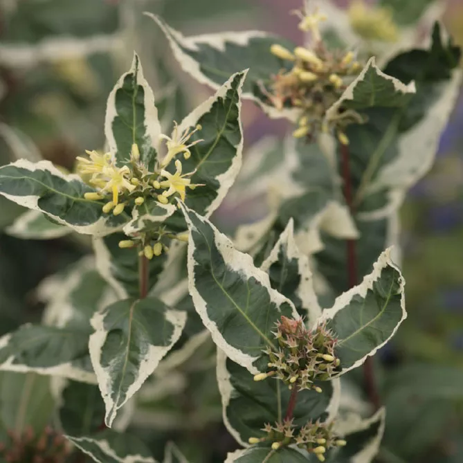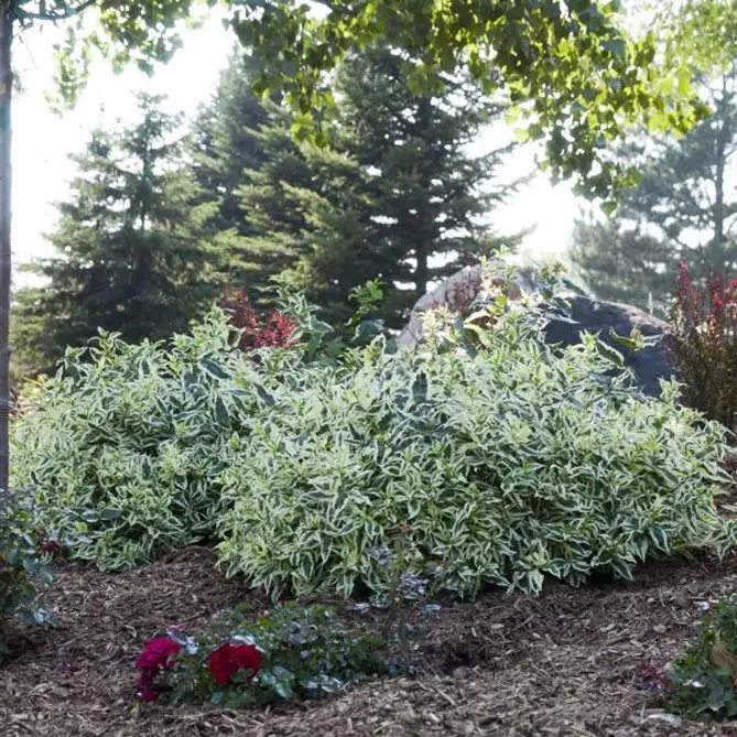 Дієрвілла сидячелиста «Кул Сплеш» (Cool Splash) досягає висоти 1,2 м. Період цвітіння: червень-липень. Компактний чагарник з зеленими строкатими листками з білою облямівкою, дуже витривалий, заповнить затінені ділянки саду.