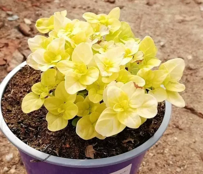 - «Голден шайн» Golden Shine – сорт з округлим, золотисто-жовтим листям та рожевими квітами.