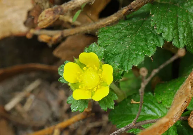 Увага! Жовті пелюстки квітів дюшенеї дозволяють легко відрізнити цей вид від їстівної суниці з білими пелюстками.
