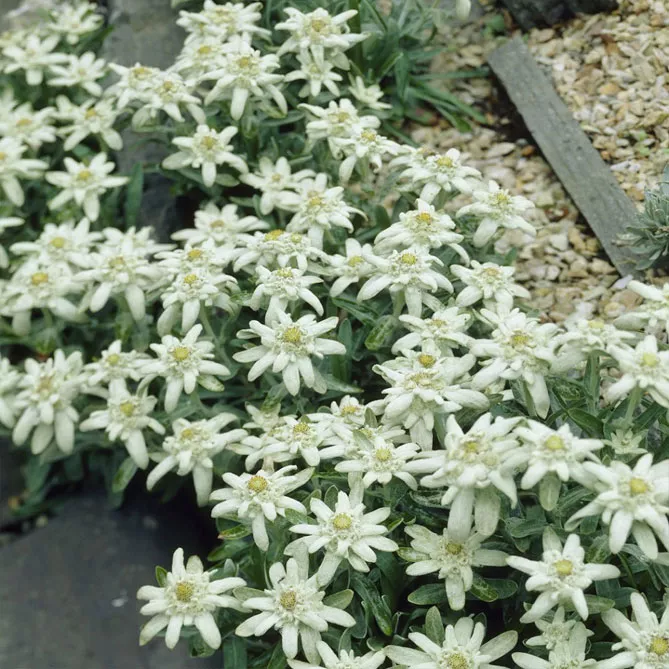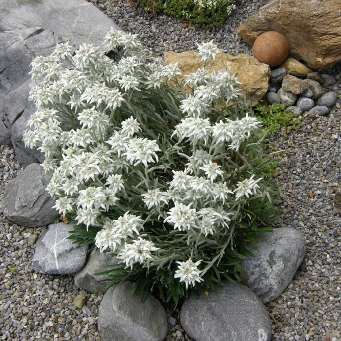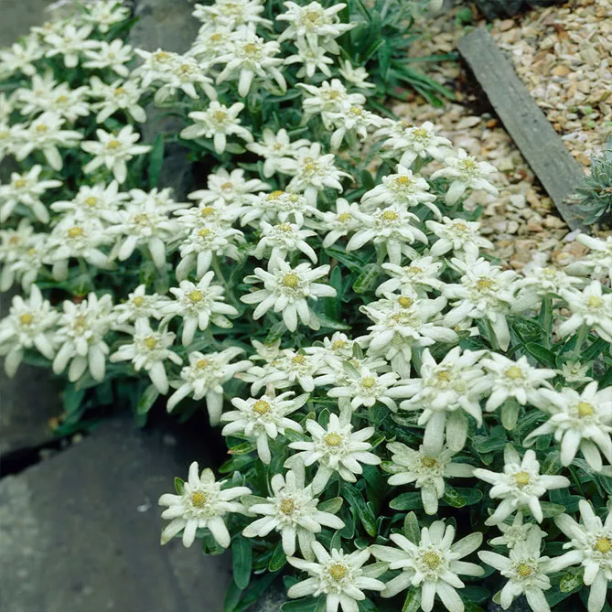 Гірська квітка едельвейс є ідеальною рослиною для рокаріїв та ідеальним багаторічником для бордюрів саду, наприклад, посадженим уздовж доріжок або на клумбах.