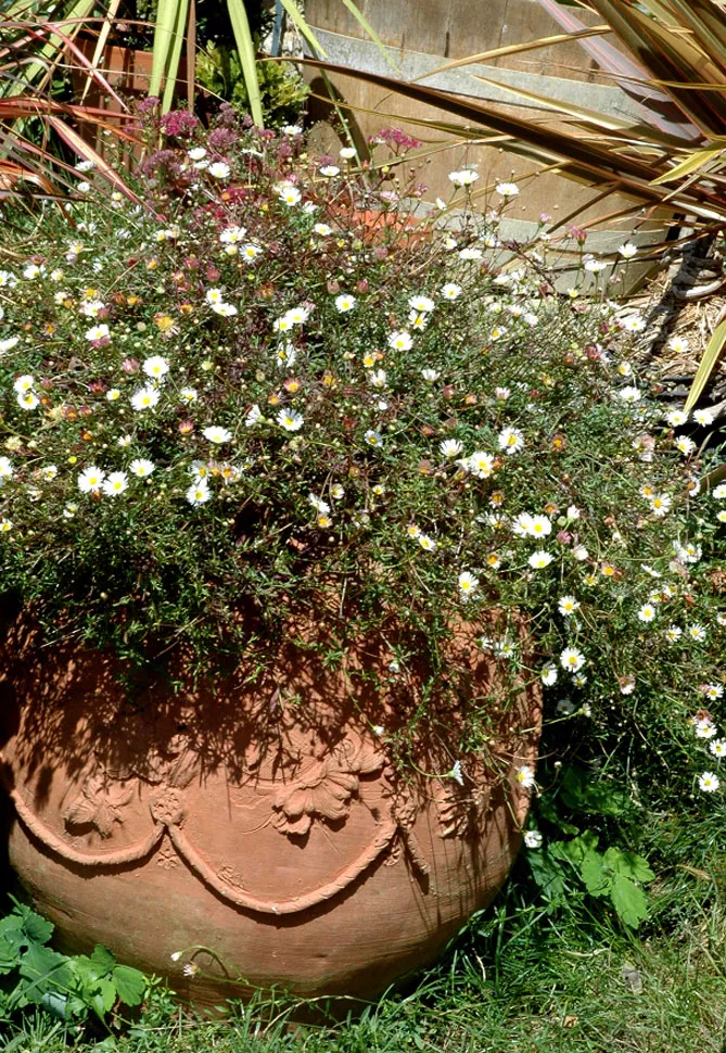 Багато гібридів з квітками, що нагадують айстри, легко вирощуються та рясно квітнуть. Влітку вони утворюють щільні розлогиі скупчення. Квітки, поодинокі або зібрані в невеликі групи, з'являються на кінцях численних вертикальних стебел. Квітки зібрані в суцвіття – кошики білого, лілового, рожевого або блакитного кольору, всередині кошика розташовані жовті трубчасті квітки. Зрізані повністю розквітлі квітки добре зберігають свіжість у вазах.
