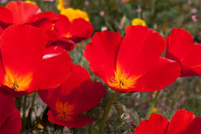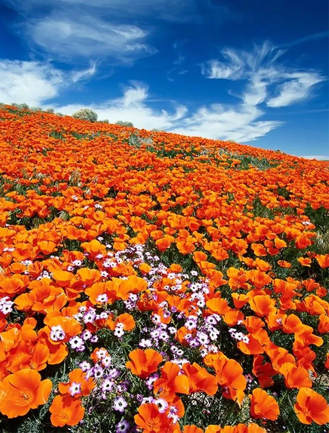 Рослина походить з Каліфорнії (це навіть офіційний символ цього штату). Зустрічається там у природних умовах – у заповідниках Каліфорнії росте на легких вапнякових і піщаних ґрунтах, досягаючи у висоту до 40 см, утворюючи широкі килими і величезні луки, вкриті польовими квітами.