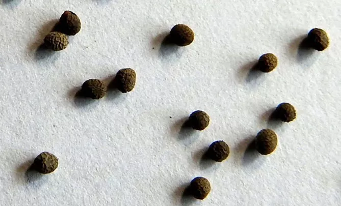 - Плоди – циліндричні коробочки з безліччю насінин. Насіння дрібне, коричневе, майже кулясте (400-700 шт. / в 1 г).