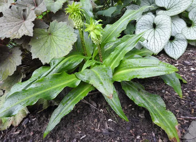 Підвид E. autumnalis undulata утворює щільну розетку з довгих, вузьких, ланцетних листків із хвилястими краями. Суцвіття у формі качана висотою 50-60 см. Квітки білі, світло-жовто-зелені. Квіти зеленіють, виставлені на сонці. У тіні квітконос має схильність до полегання.