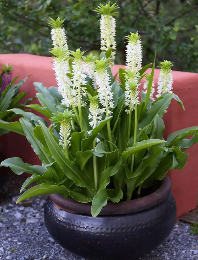 Еукоміс також можна вирощувати в контейнерах. Правила вирощування схожі на садові: