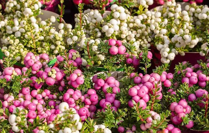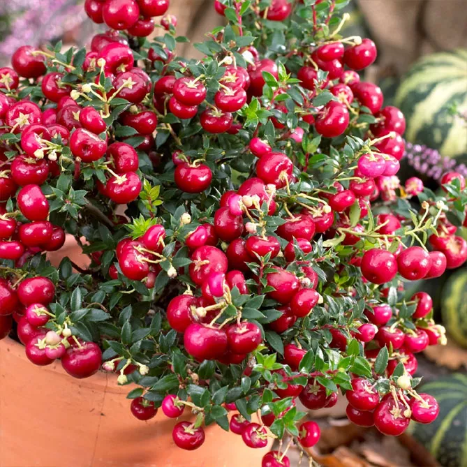 Головна привабливість гаультерії полягає у формуванні маленьких плодів – кістячок, схожих на перламутрові намистини, діаметром 1 см, що зберігаються до весни. Залежно від сорту, вони мають білий, рожевий або червоний колір з різними відтінками.