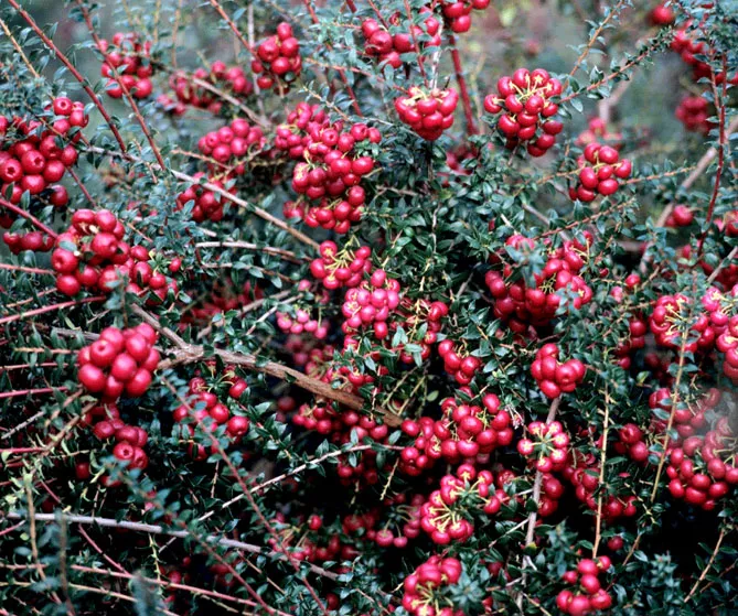Вид гаультерія гострокінцева або загострена (Gaultheria mucronate) родом із Патагонії, південної Аргентини та Чилі, використовується в садах через свій декоративний вигляд. Цей вид займає великі пустирі до 40° Південної паралелі. Він утворює компактну зелену масу висотою близько 60 см. Його невелика блискуча, шкіряста, темно-зелена листва має загострені кінчики, які роблять його трохи колючим. Восени листя стає бронзовим.
