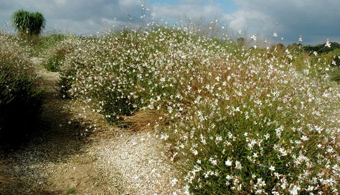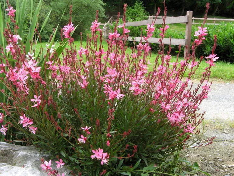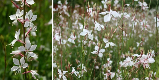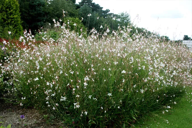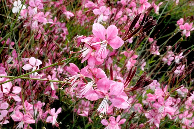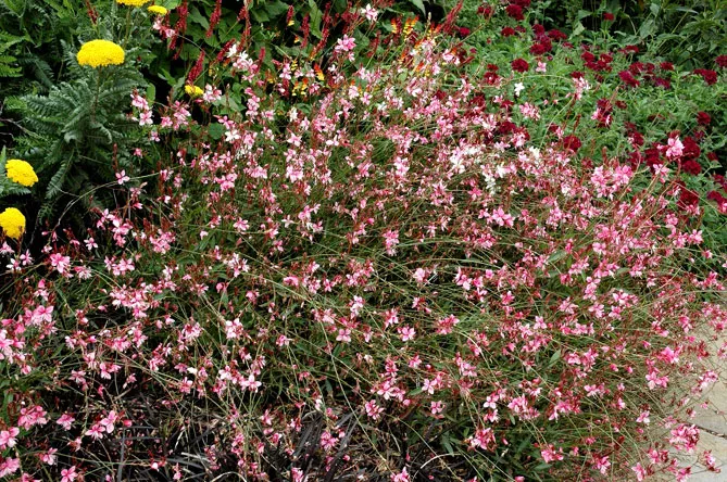 Плавне цвітіння гаури нагадує поля польових квітів. Тому варто поєднувати її з іншими рослинами заміського типу: