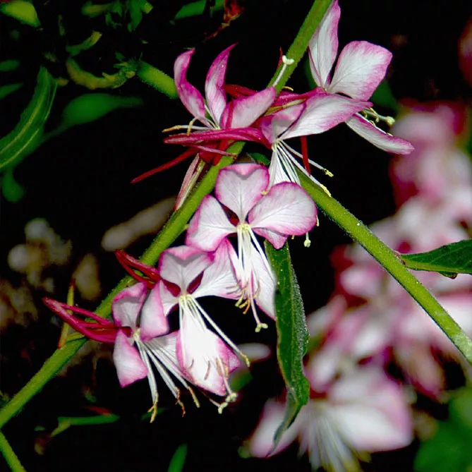 Розташована за нижчими рослинами, такими як бергенії, гаура допомагає освітлити масив своїми довгими тонкими квітковими стеблами.