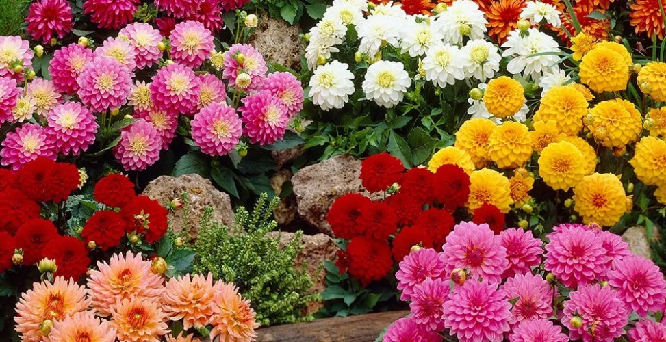 На додаток до високих і середніх георгін також популярні карликові сорти. Тому ці дивовижні квіти ділять на кілька груп, полегшуючи їх класифікацію, ідентифікацію.