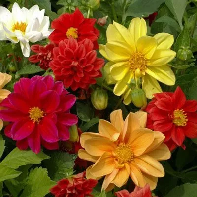 Як і в інших груп, серед георгінів зустрічаються різновиди всіх кольорів, крім синього, в якому ці чудові рослини не розцвітають. Можна вибирати серед: