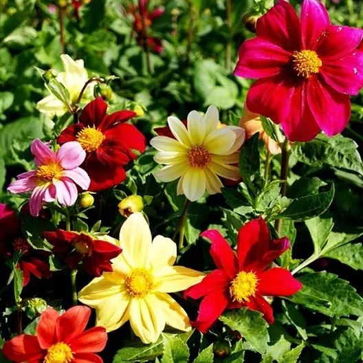Серед карликових георгінів з одиночними квітками слід згадати дуже низькі сорти, що пропонуються у вигляді насіння: