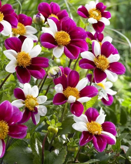 Це різновиди низьких сортів, розгалужених і компактних з махровими, напівподвійними або одиночними квітами, що ростуть до 60 см у висоту. Вони доступні для посадки у формі бульб, саджанців або насіння. Численні різновиди карликів з махровими або напівмахровими квітками популярні у вигляді насіннєвих сумішей, наприклад: