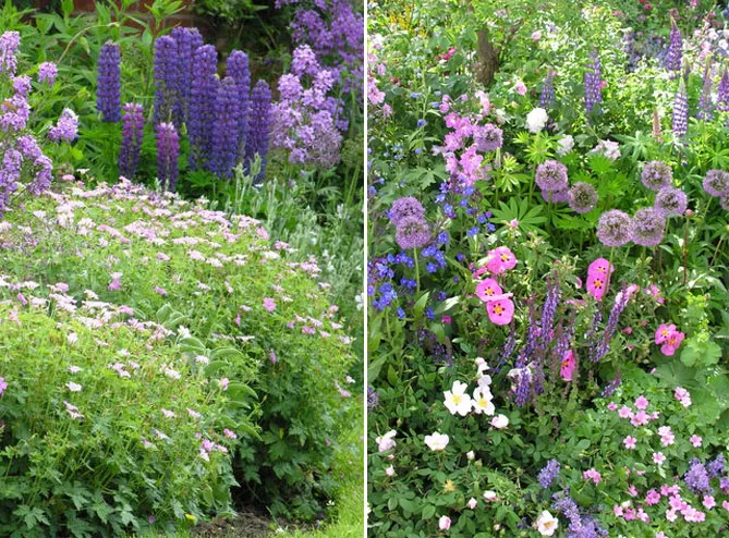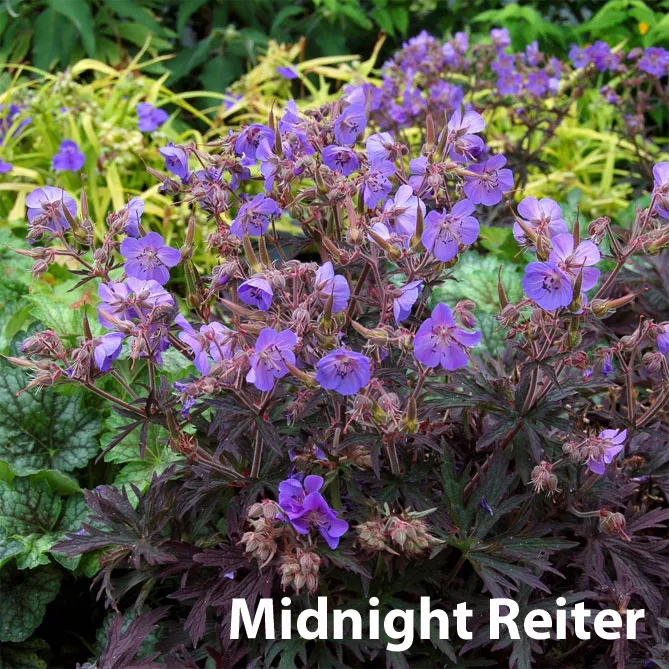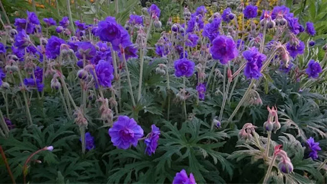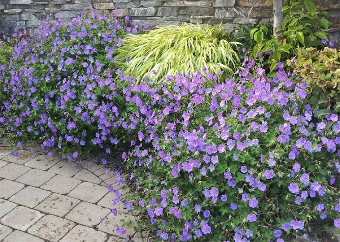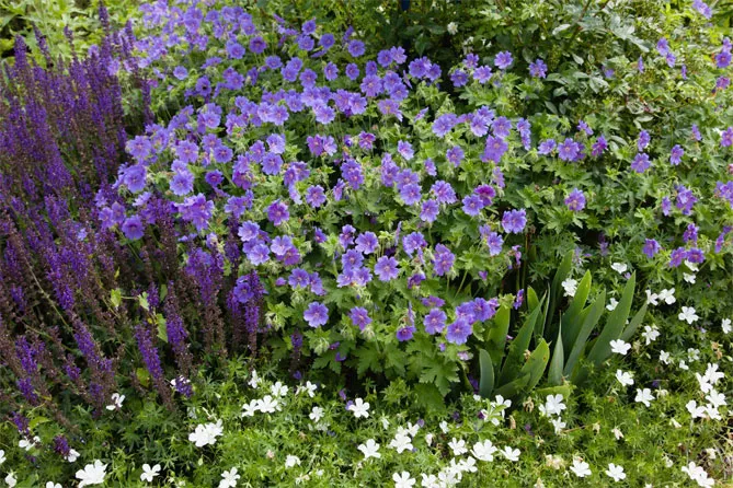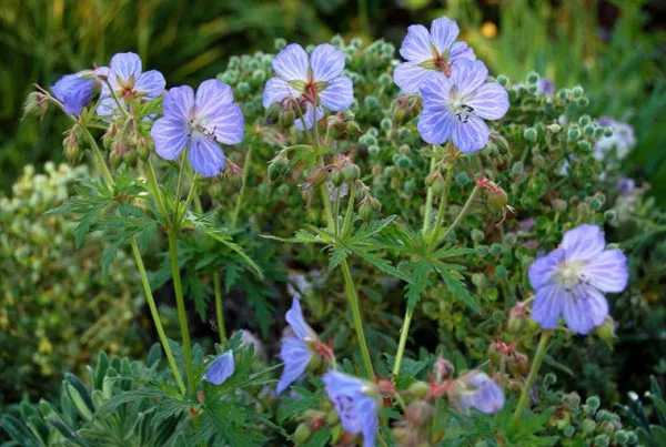 - не втрачають колір – Geranium pratense сорт «Сільвер квін» Silver Queen, Geranium himalayense сорт «Айріш блю» Irish Blue.
