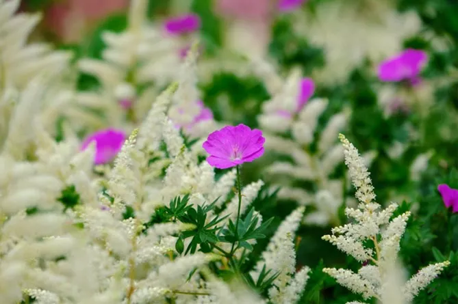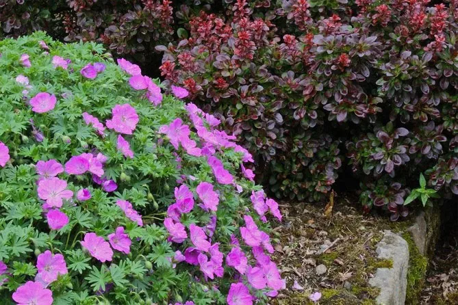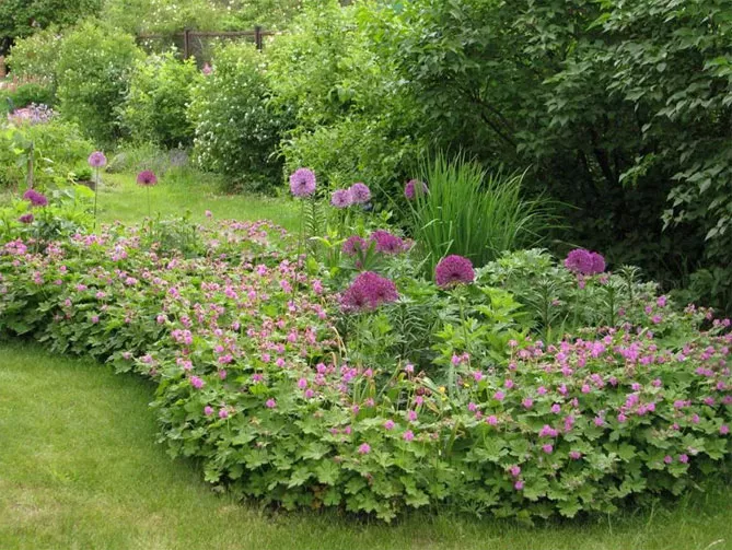 Гімалайську герань можна комбінувати з тюльпанами, гіацинтами, оскільки вона раніше випускає листя.