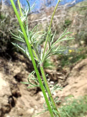 На сильно розгалужених стеблах розташовані яскраво-зелені перисті листки, дуже різні, з лінійними листочками, що надає рослині перистий, легкий, природний вигляд. Листки липкі на дотик. Висота пагонів: 45-60 см.