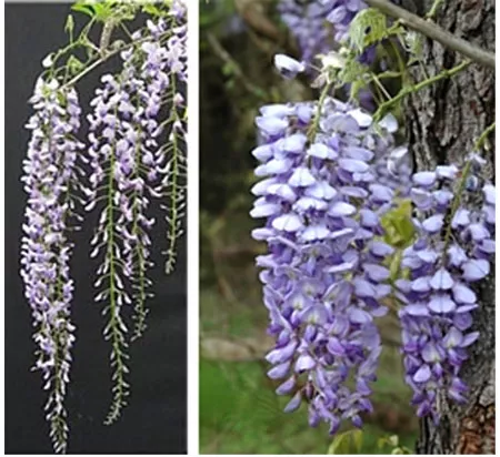 Фото. Суцвіття китайської (праворуч) та японської (ліворуч) гліцинії.