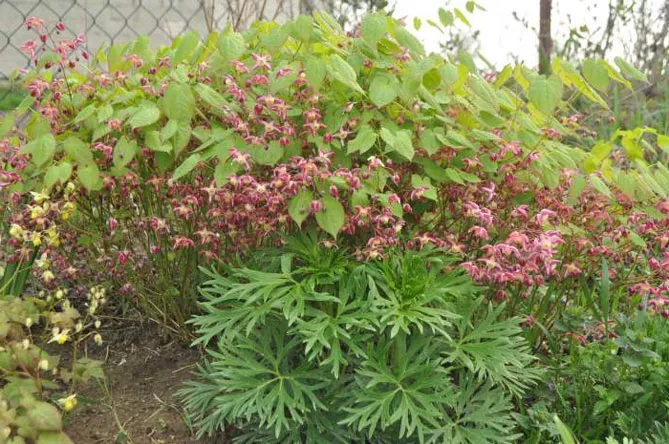 - Горянку можна садити в компанії з іншими багаторічними рослинами, наприклад: