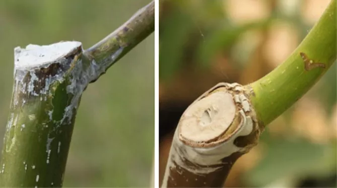 Інструменти, що використовуються для обрізки хворих дерев, слід дезінфікувати в денатураті, бензойній кислоті. Розведений Доместос також використовують для дезінфекції ран. Після дезінфекції рани потрібно промити водою і змастити спеціальною пастою Funaben 03 PA.