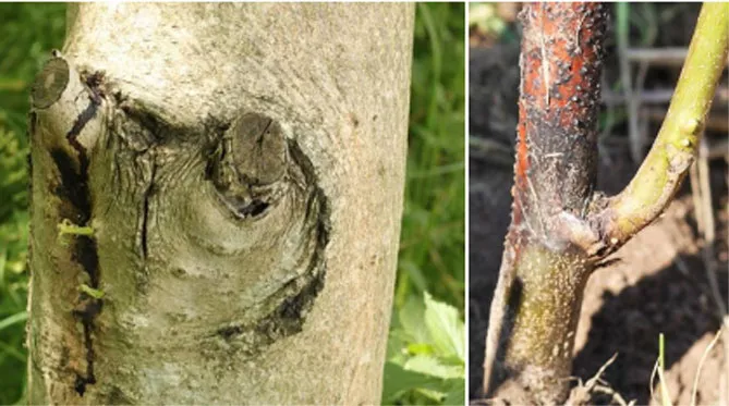 - На місці інфекції утворюються тріщини, що загоюються в наступні сезони.