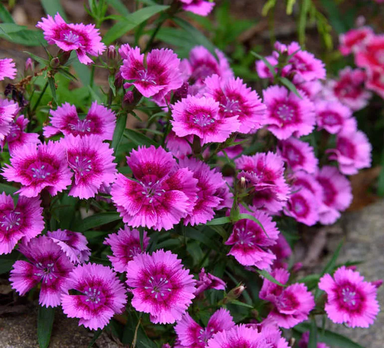 Цвітіння рясне, безліччю маленьких квіточок з бахромою, у різних кольорах – білий, червоний, рожевий, фіолетовий. Є сорти з строкатими квітами, у яких, наприклад, червона серцевина і кремово-білі кінчики пелюсток. На пелюстках часто є бордові смужки. Квіточки маленькі, не ароматні.